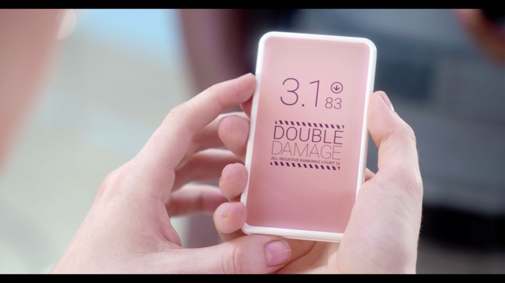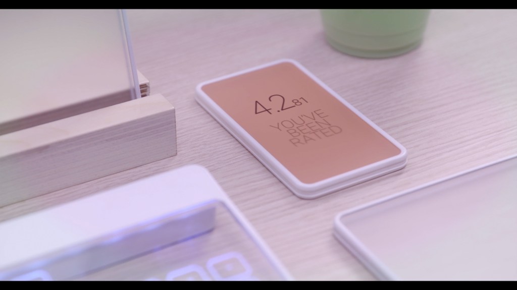 It doesn’t take long before it’s evident that ratings are actually used to represent socio-economic status. In fact, money isn’t mentioned once throughout the film. But, people with high-ratings clearly constitute the wealthy and famous, while people with low ratings are ostracized and excluded from opportunities.